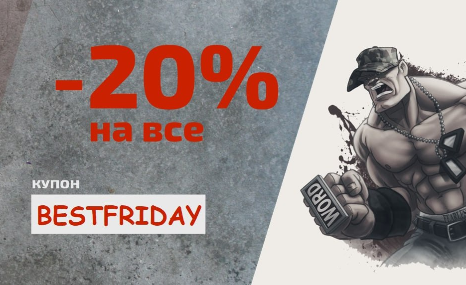 С 11.11 по 13.11 действует скидка −20% на весь ассортимент по купону